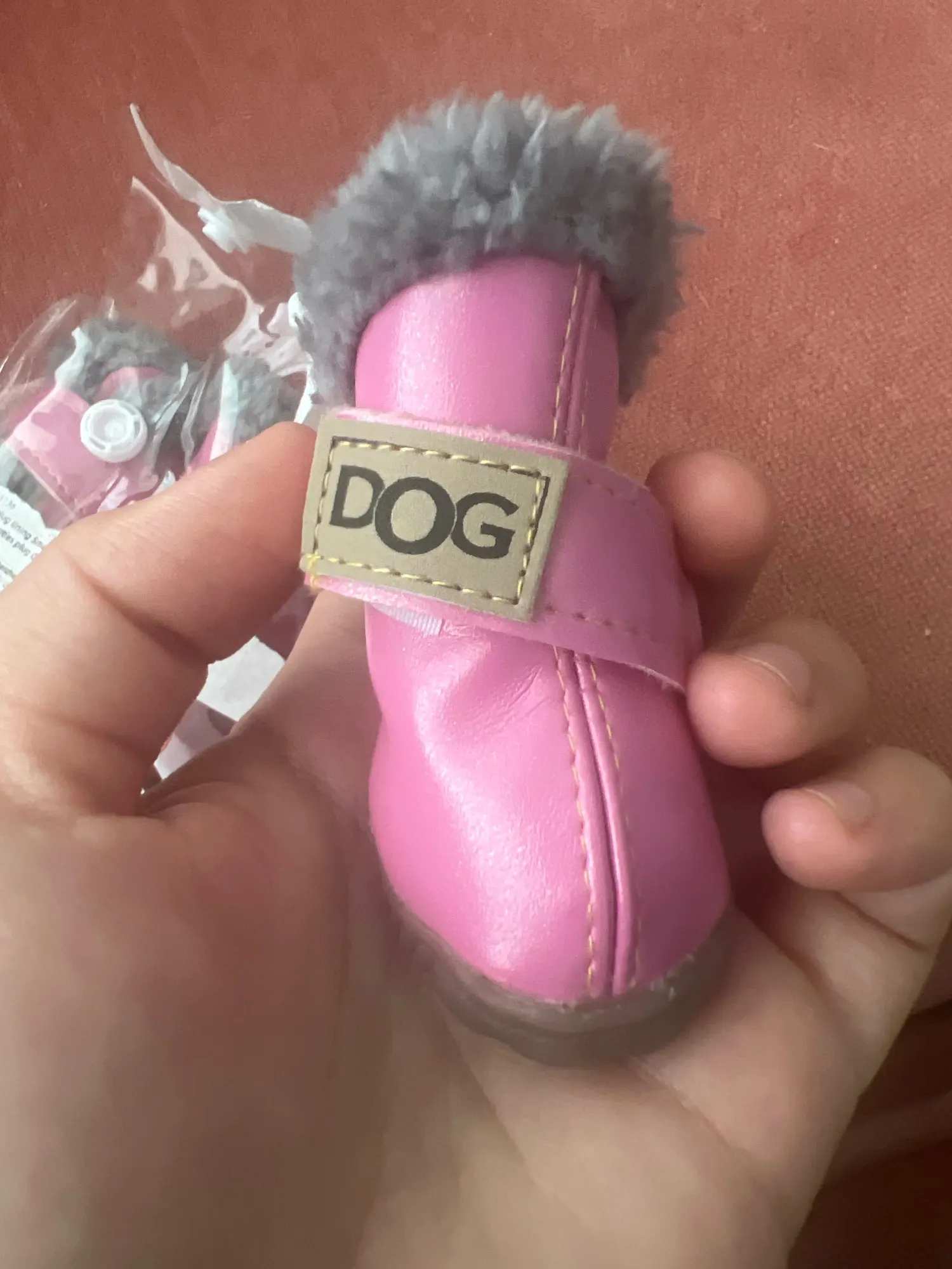Exactly as described pretty pink boots and has fur inside. Size 1 fitted my chihuahua that I normally couldn’t find for her size , this ones fit her perfectly