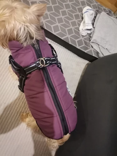 Keep your furry friend safe and dry with our waterproof dog jacket featuring a built-in harness. Perfect for walk in any weather.