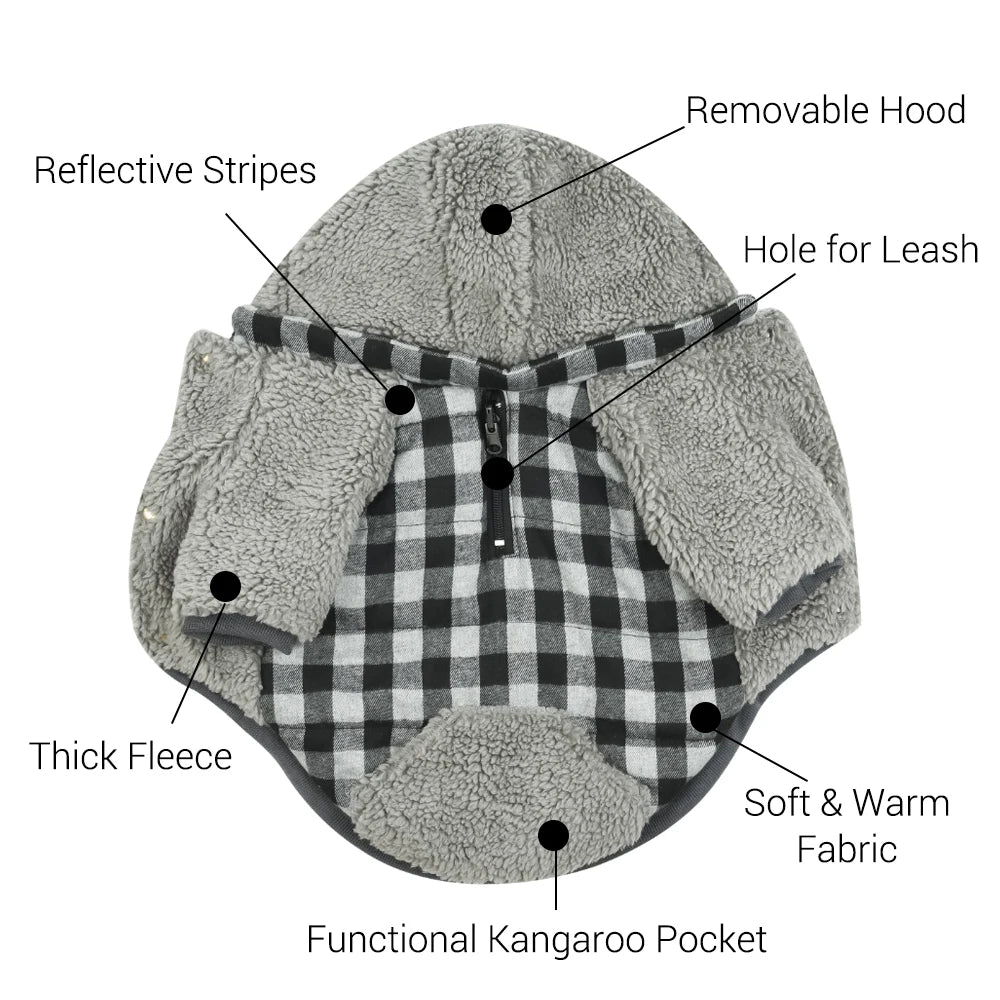 WarmPlaid™ Reversible Dog Coat - Super Soft, Thick Jacket with Removable Hood